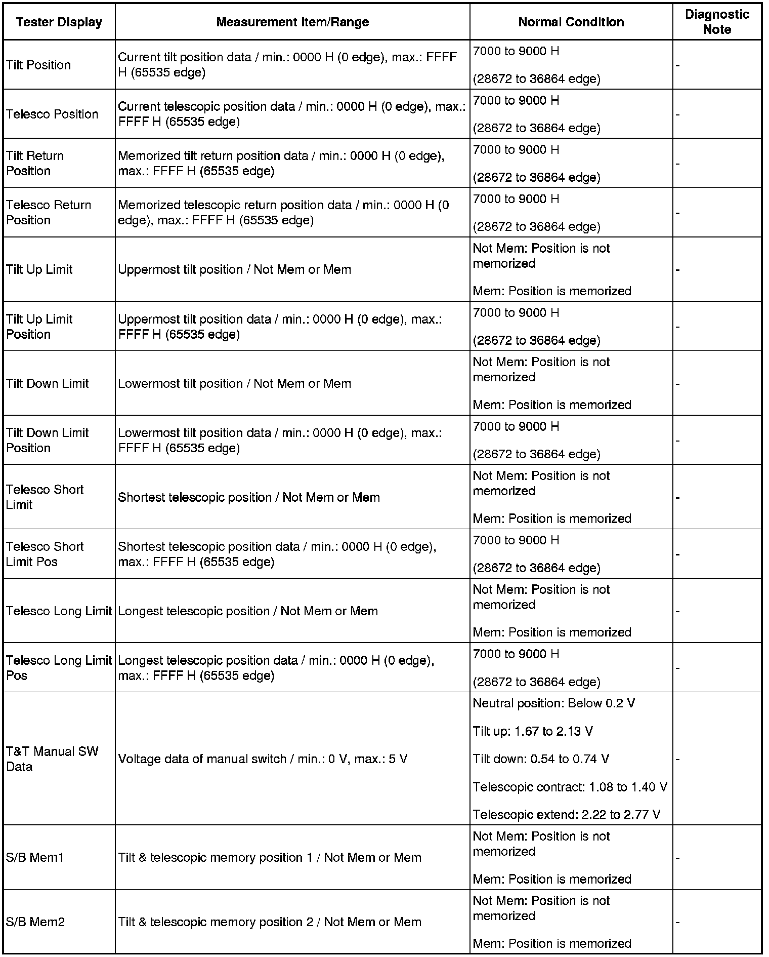 STEERING COLUMN: POWER TILT AND POWER TELESCOPIC STEERING COLUMN SYSTEM: FREEZE FRAME DATA