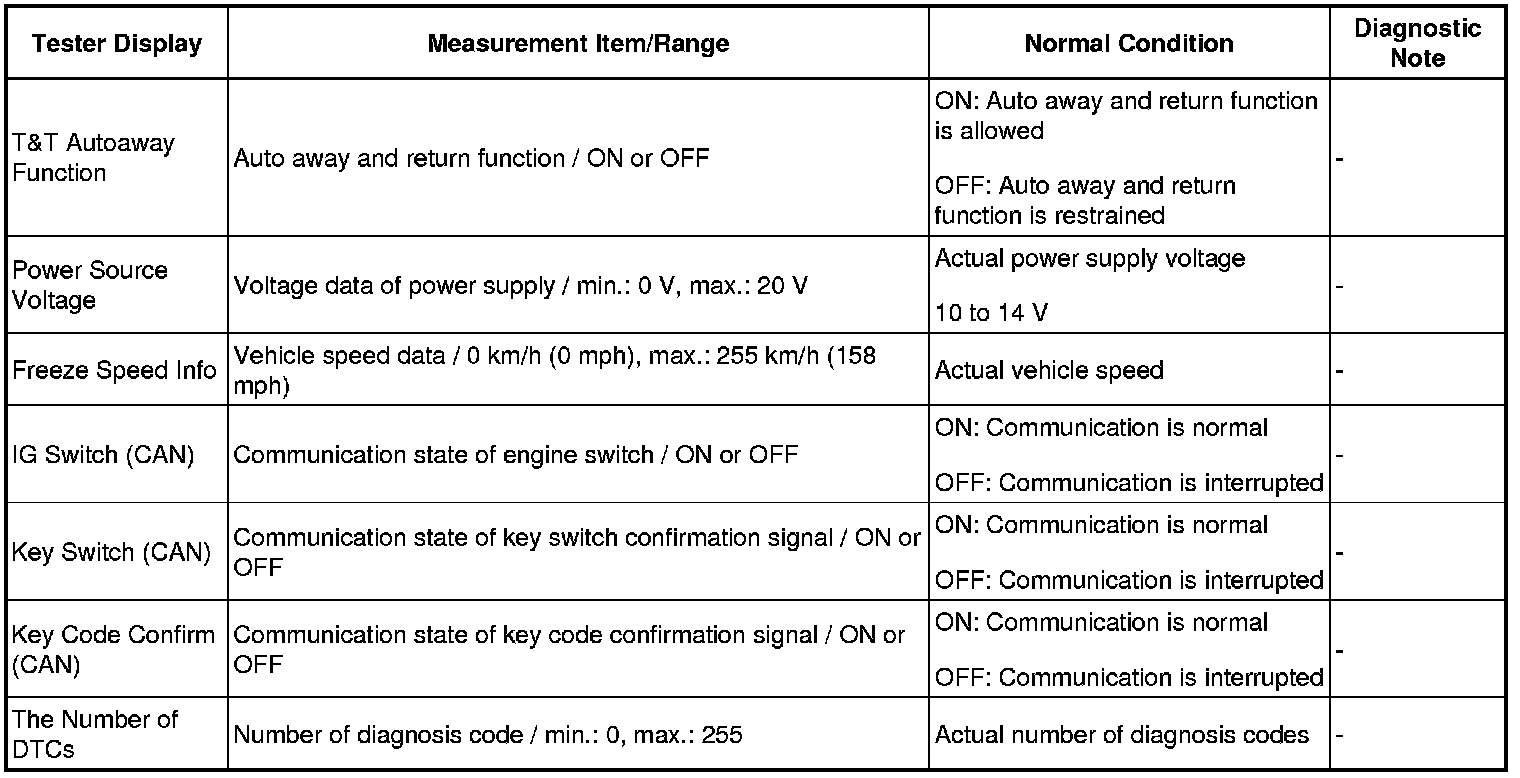 (e) Check the freeze frame data. Enter the following menus: Chassis / Tilt & Telescopic / Utility / Freeze Frame Data.