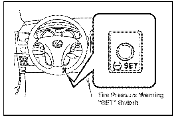 7. Push and hold the Tire Pressure Warning "SET" Switch for 3 seconds until the Low Tire Pressure Warning Light blinks 3 times and then turns OFF to set the tire pressure initialization.