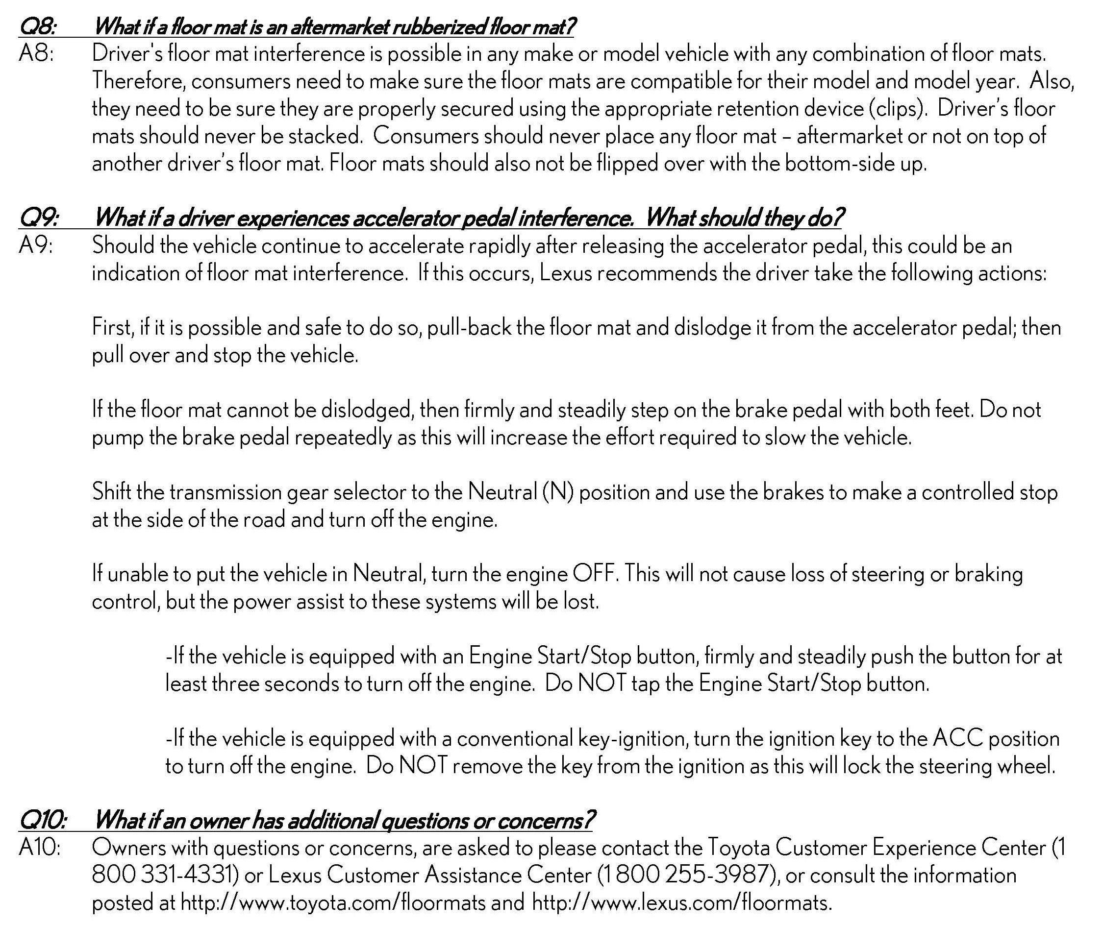 Recall - Floor Mat/Accelerator Pedal Interference