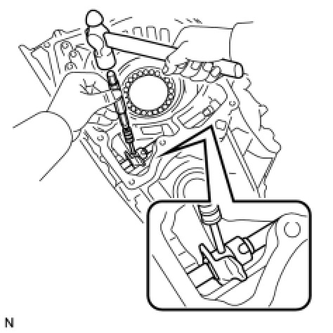 HINT: Slowly drive out the pin so that it will not fall into the transaxle case.
