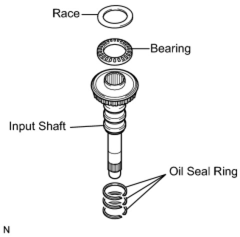(b) Remove the thrust needle roller bearing and thrust needle roller race from the input shaft.