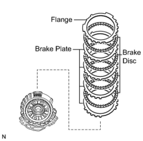 (b) Remove the brake flange, 5 brake discs, and 5 brake plates from the transaxle case.