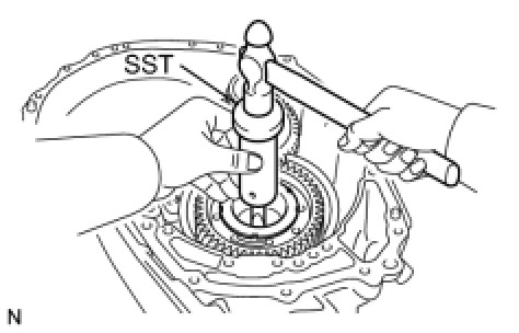 (a) Using SST, remove the counter driven gear rear tapered roller bearing outer race from the transaxle case.