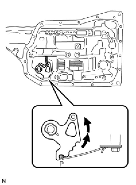 (b) Turn the manual valve lever 2 notches counterclockwise to set it in the P position as shown in the illustration.