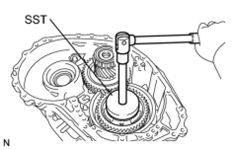 (c) Using SST, remove the nut from the planetary gear assembly.