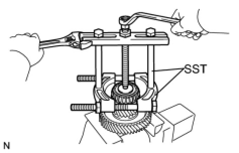 (a) Using SST, remove the counter driven gear rear tapered roller bearing and differential drive pinion from the counter driven gear.