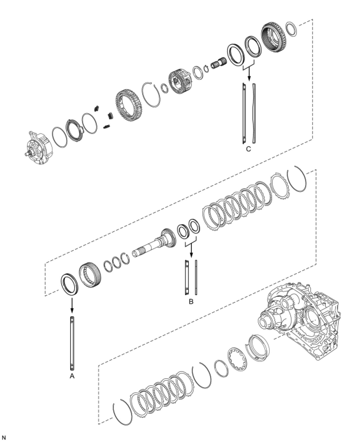 - Make sure that the lip of the No. 3 brake piston is not twisted and does not get caught in the transaxle case.