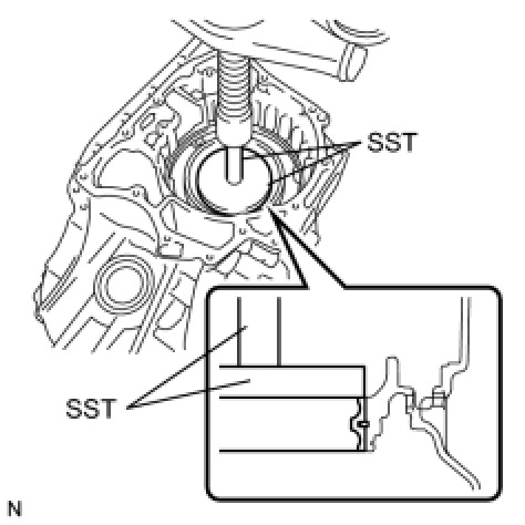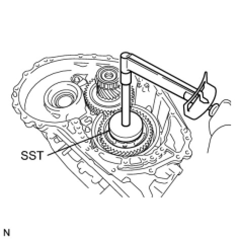 - Confirm that the snap ring is secured in the groove of the transaxle case.