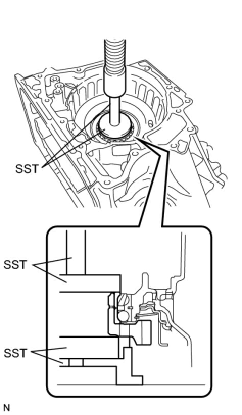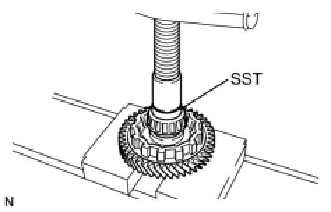 (a) Using SST and a press, press in the planetary gear assembly to the transaxle case.