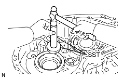 (a) Using SST and a hammer, install the counter driven gear rear tapered roller bearing outer race to the transaxle case.