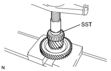 (a) Using SST and a press, install a new the counter driven gear rear tapered roller bearing to the counter driven gear sub-assembly.