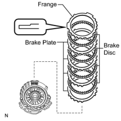 (a) Install the 5 brake discs, 5 brake plates, and brake flange to the transaxle case.