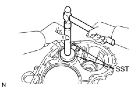 (a) Using SST and a hammer, install the needle roller bearing into the transaxle rear cover.