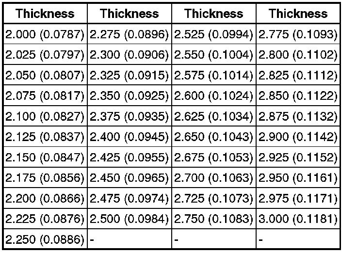 0.007 to 1.113 mm (0.0003 to 0.0438 in.)