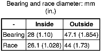 If the turning torque is not within the specified range, refer to the table below to select a shim of the counter driven gear front tapered roller bearing outer race so that the turning torque is within the specified range.