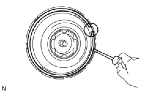 (d) Using a screwdriver, install the snap ring to the direct multiple disc clutch assembly.
