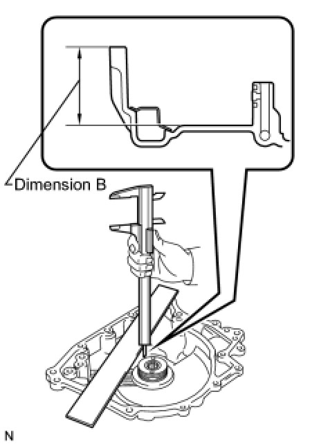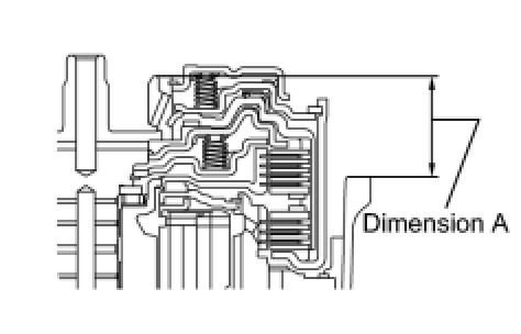 (d) As shown in the illustration, place a straight edge on the multiple direct clutch drum and measure the distance between the transaxle case and the straight edge using vernier calipers (Dimension A).