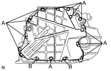 - Completely remove any oil or grease from the contact surface of the transaxle case and oil pan sub-assembly with the gasket before installation.