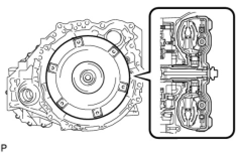 HINT: If the stator shaft splines are difficult to engage with the stator splines, move the torque converter back approximately 10 mm and engage the splines while rotating the torque converter.