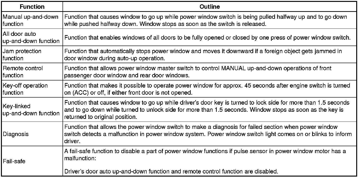 1. POWER WINDOW CONTROL SYSTEM DESCRIPTION