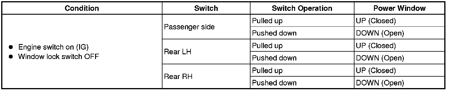 (b) Check that the power windows except the driver side power window operate as follows: