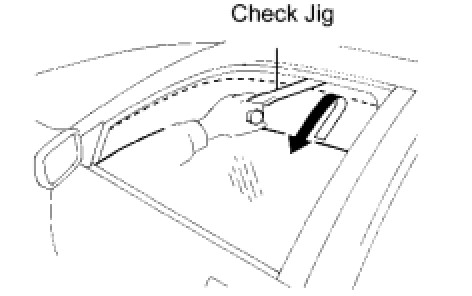 (3) When the door glass is closed using AUTO or MANUAL operation, check that the door glass goes down after contacting the check jig. The door glass should go 80 to 100 mm away from the position where it contacted the check jig.