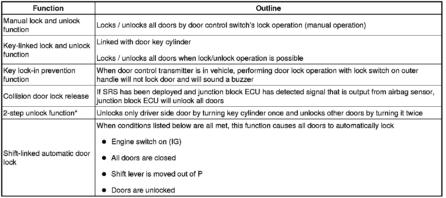 *: Default is OFF. Power Door Lock Control System