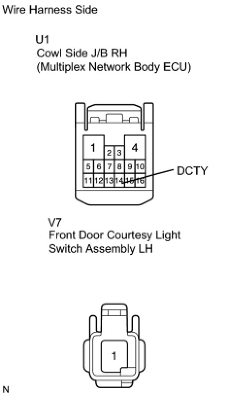4. CHECK WIRE HARNESS (MULTIPLEX NETWORK BODY ECU - FRONT COURTESY LIGHT SWITCH)