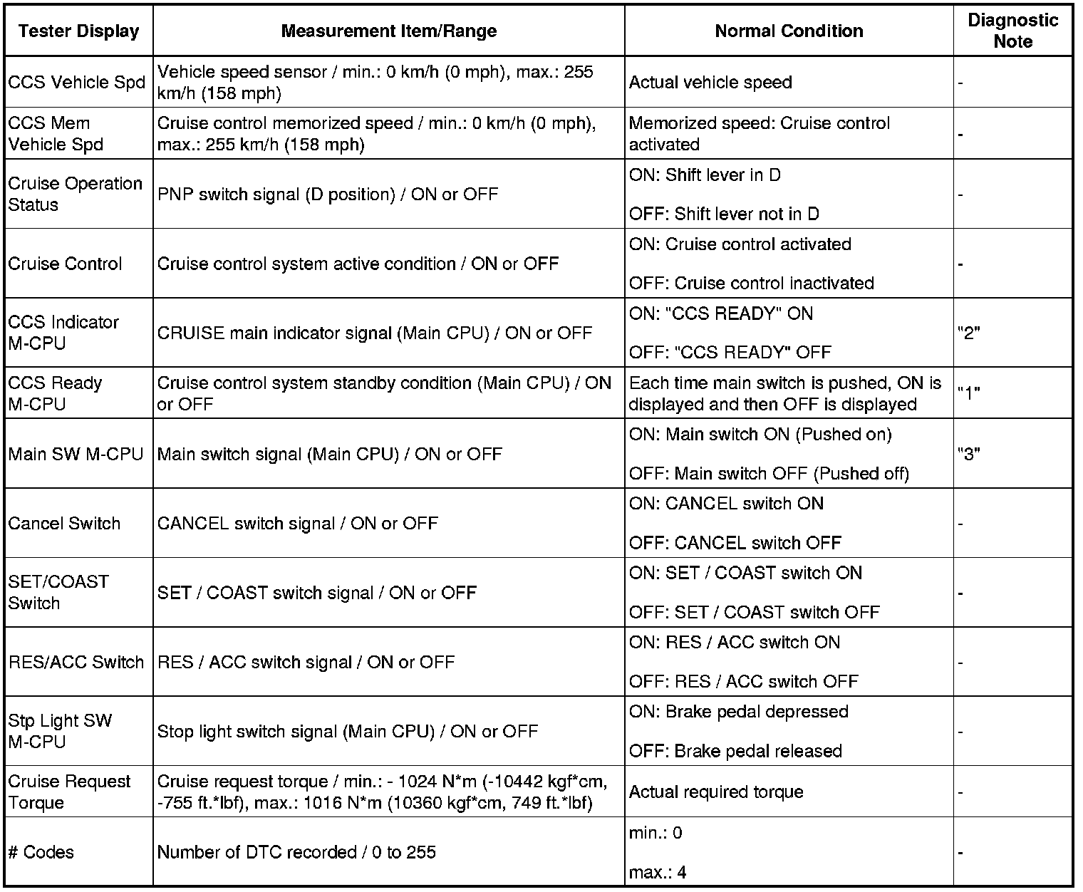 CRUISE CONTROL: CRUISE CONTROL SYSTEM: DATA LIST / ACTIVE TEST