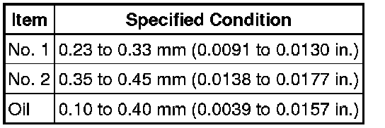 If the end gap is greater than the maximum, replace the piston ring. If the end gap is greater than the maximum even with a new piston ring, replace the cylinder block.