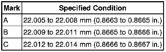 (d) Subtract the piston pin diameter measurement from the piston pin hole diameter measurement.