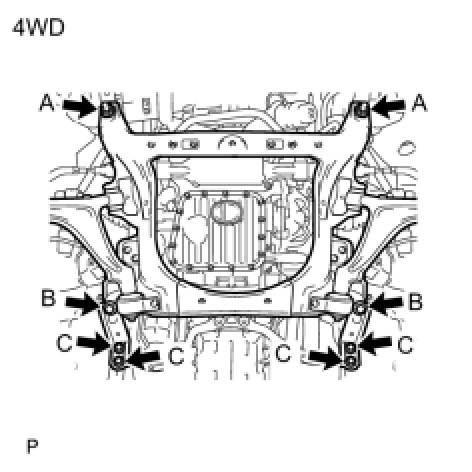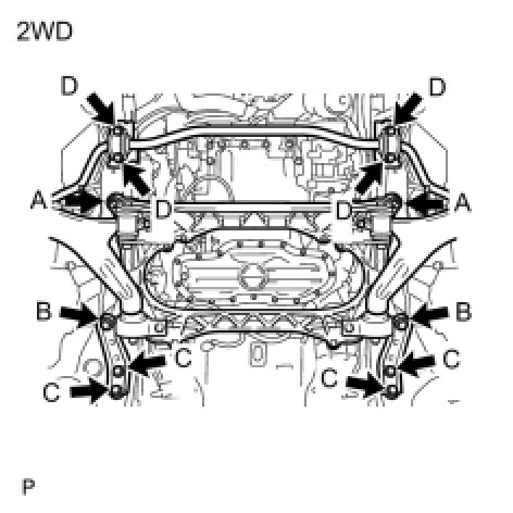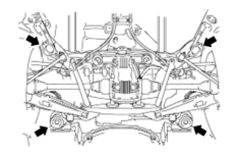 (b) Tighten the front suspension lower crossmember-to-body mounting nuts.
