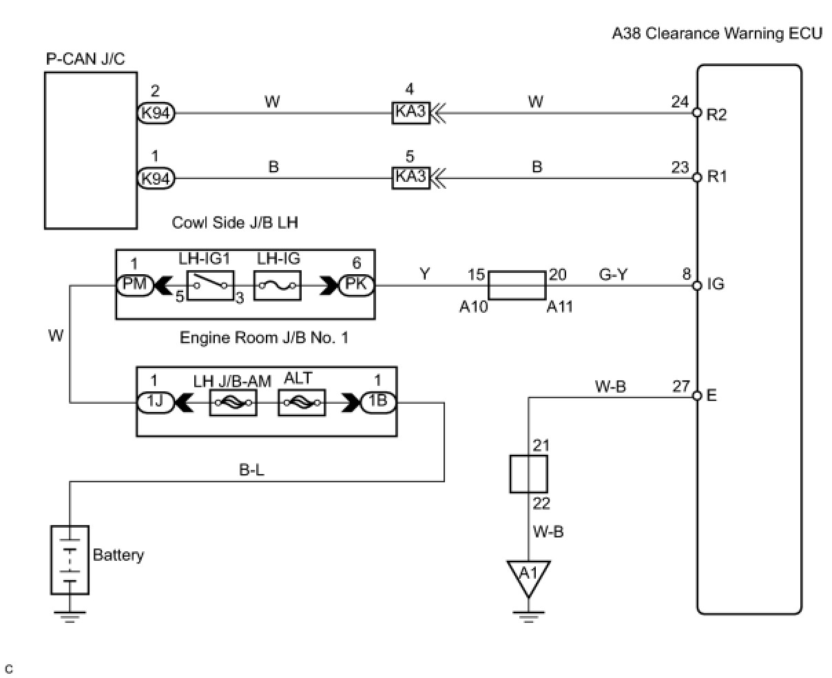 1. CHECK CAN BUS LINE FOR DISCONNECTION (CLEARANCE WARNING ECU SUB BUS LINE)