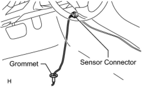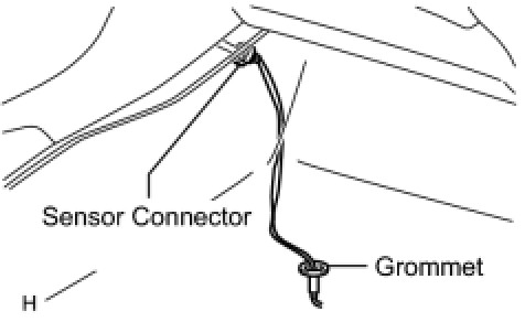 (b) Pass the sensor connector through the floor panel and install the grommet.