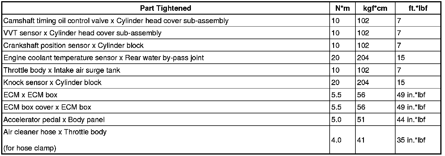 SERVICE SPECIFICATIONS: 2GR-FSE ENGINE CONTROL SYSTEM: TORQUE SPECIFICATIONS
