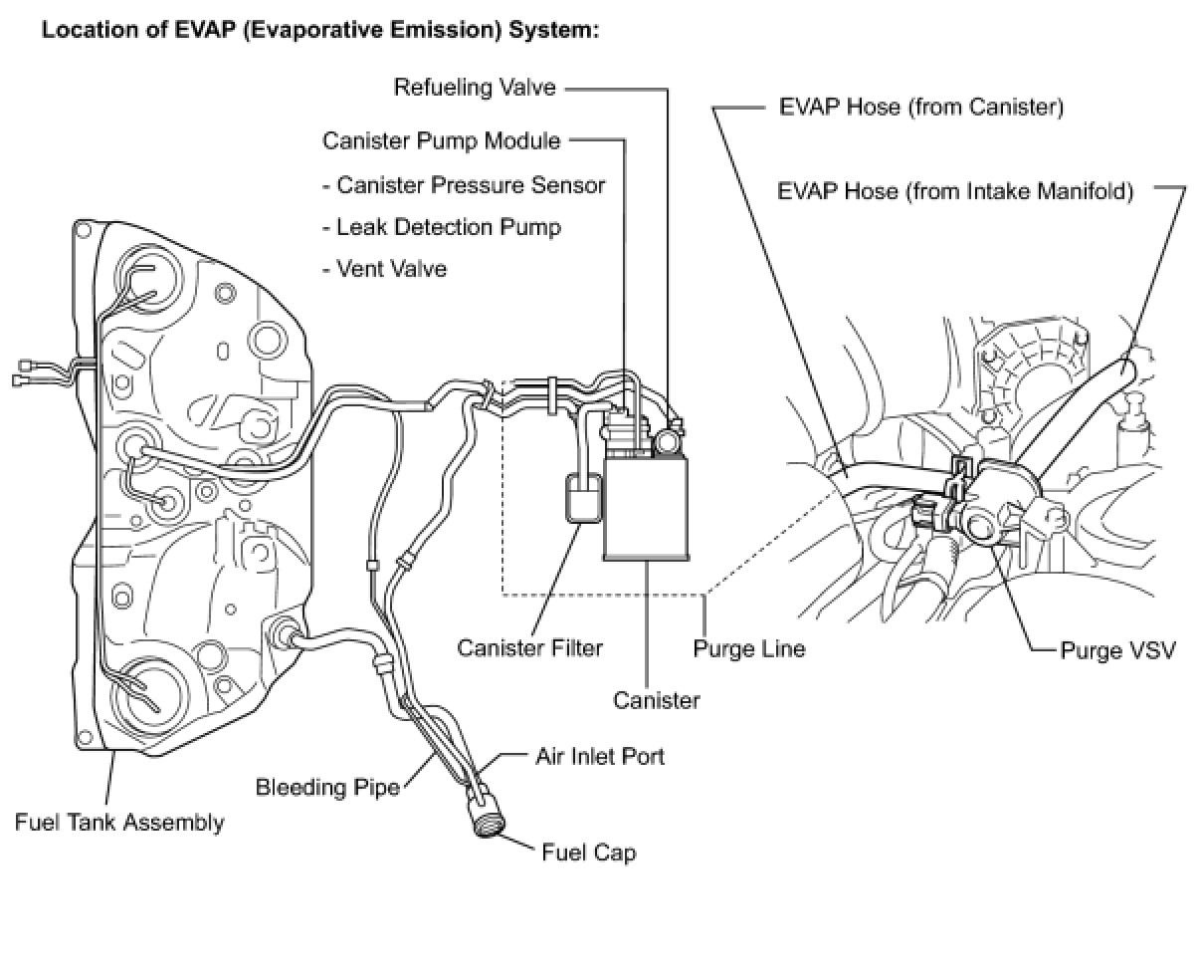 This monitor checks for EVAP (Evaporative Emission) system leaks and canister pump module malfunctions. The monitor starts 5 hours* after the engine switch is turned off. More than 5 hours are required for the fuel to cool down to stabilize the EVAP pressure, thus making the EVAP system monitor more accurate.