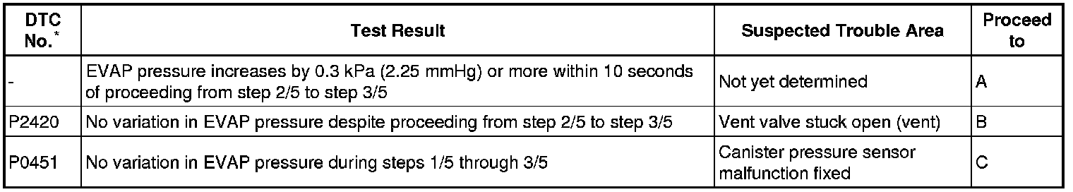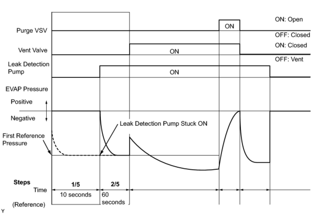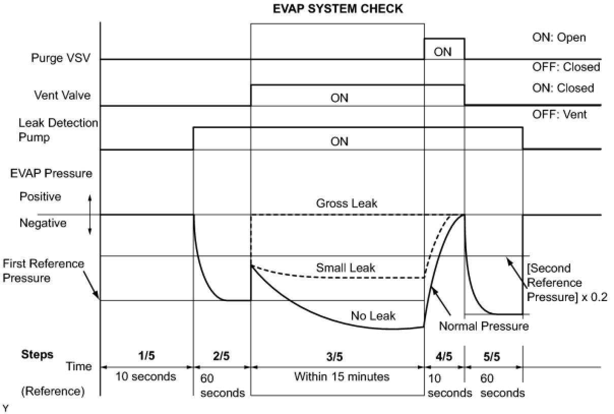 (b) Compare the EVAP pressure in step 3/5 and the second reference pressure (step 5/5).