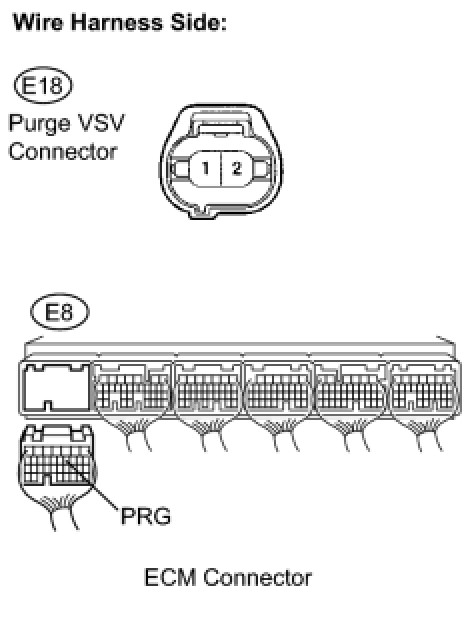 (a) Disconnect the E8 ECM connector and the E18 purge VSV connector.