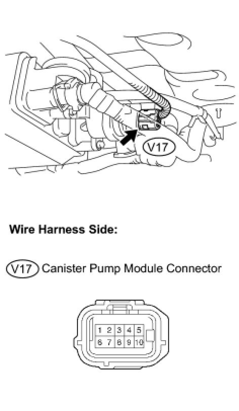 (g) Measure the voltage between V17-1 terminal of the canister pump module connector and the body ground.