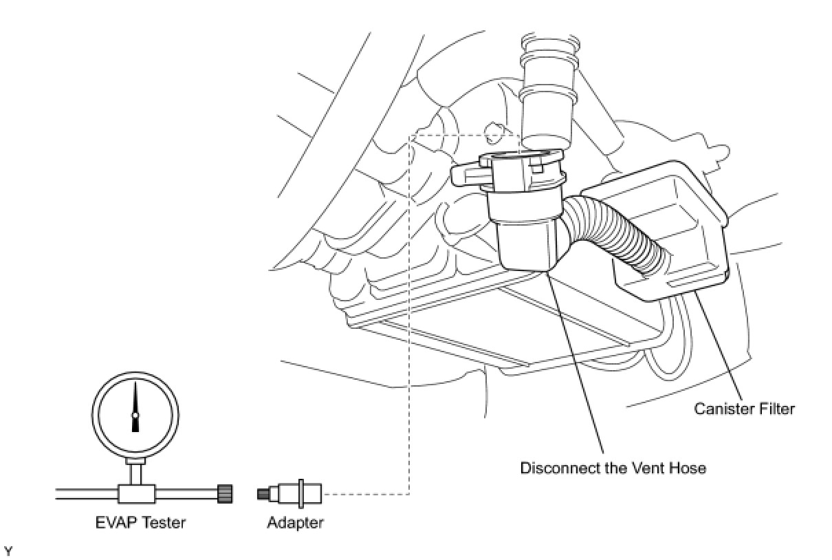 Disconnect the hose between the canister and the fuel tank from the canister. Block the canister side and conduct an inspection. In this way, the fuel tank can be excluded as an area suspected of causing fuel leaks.