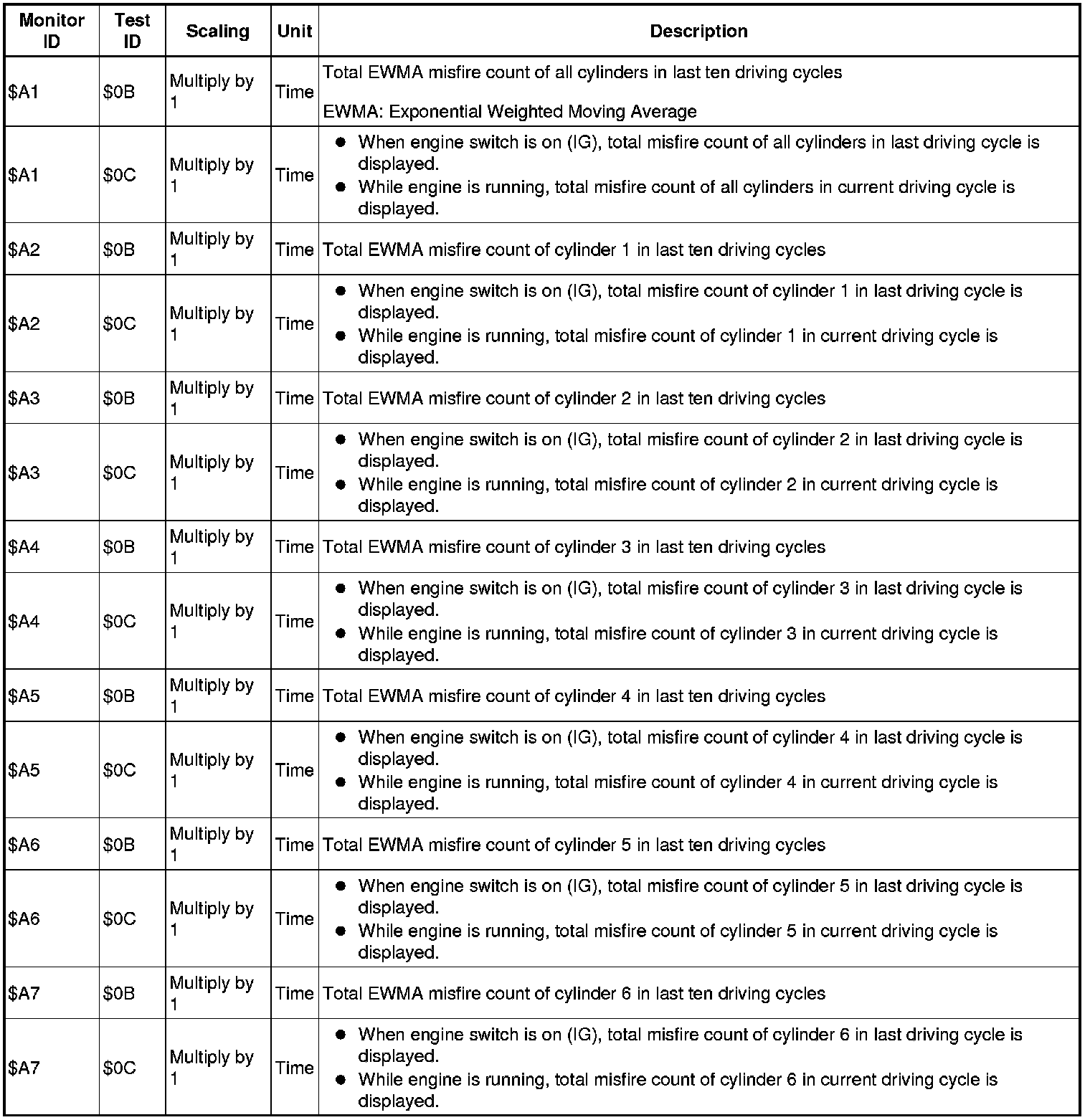 If you use a generic scan tool, multiply the test value by the scaling value listed below.