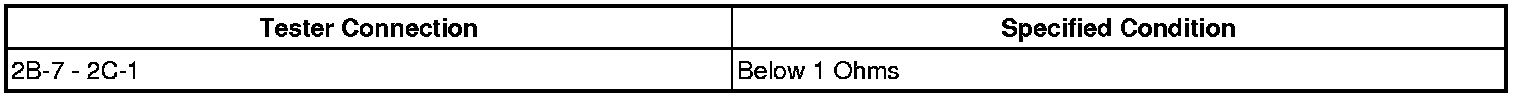 (2) Connect the battery's positive (+) lead to terminal 2A-8 and negative (-) lead to terminal 2B-3. Measure the resistance between terminals 2B-7 and 2C-1 when battery voltage is applied between the terminals.