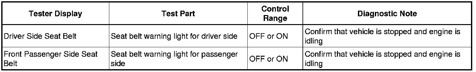 SEAT BELT: SEAT BELT WARNING SYSTEM: DATA LIST / ACTIVE TEST