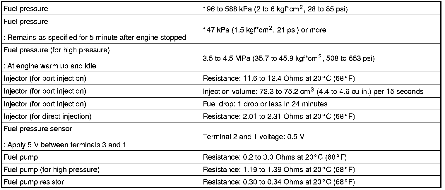 SERVICE SPECIFICATIONS: 2GR-FSE FUEL: SERVICE DATA