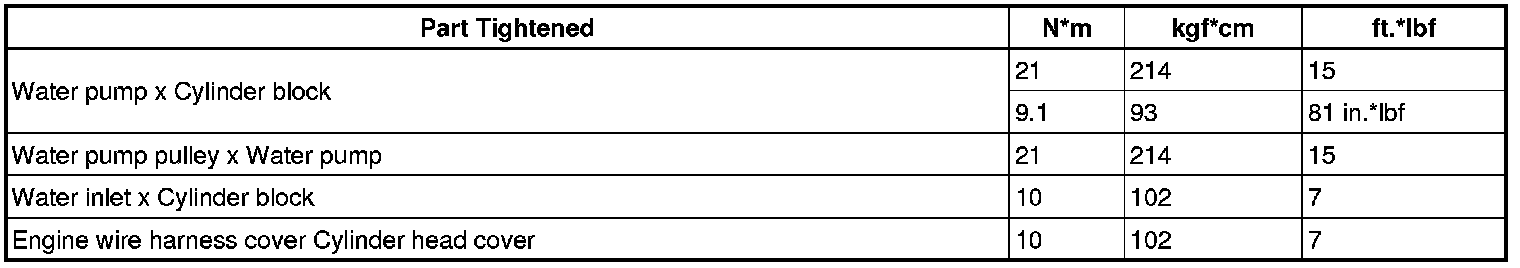 SERVICE SPECIFICATIONS: 2GR-FSE COOLING: TORQUE SPECIFICATIONS