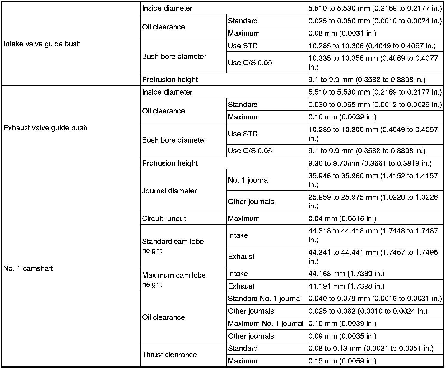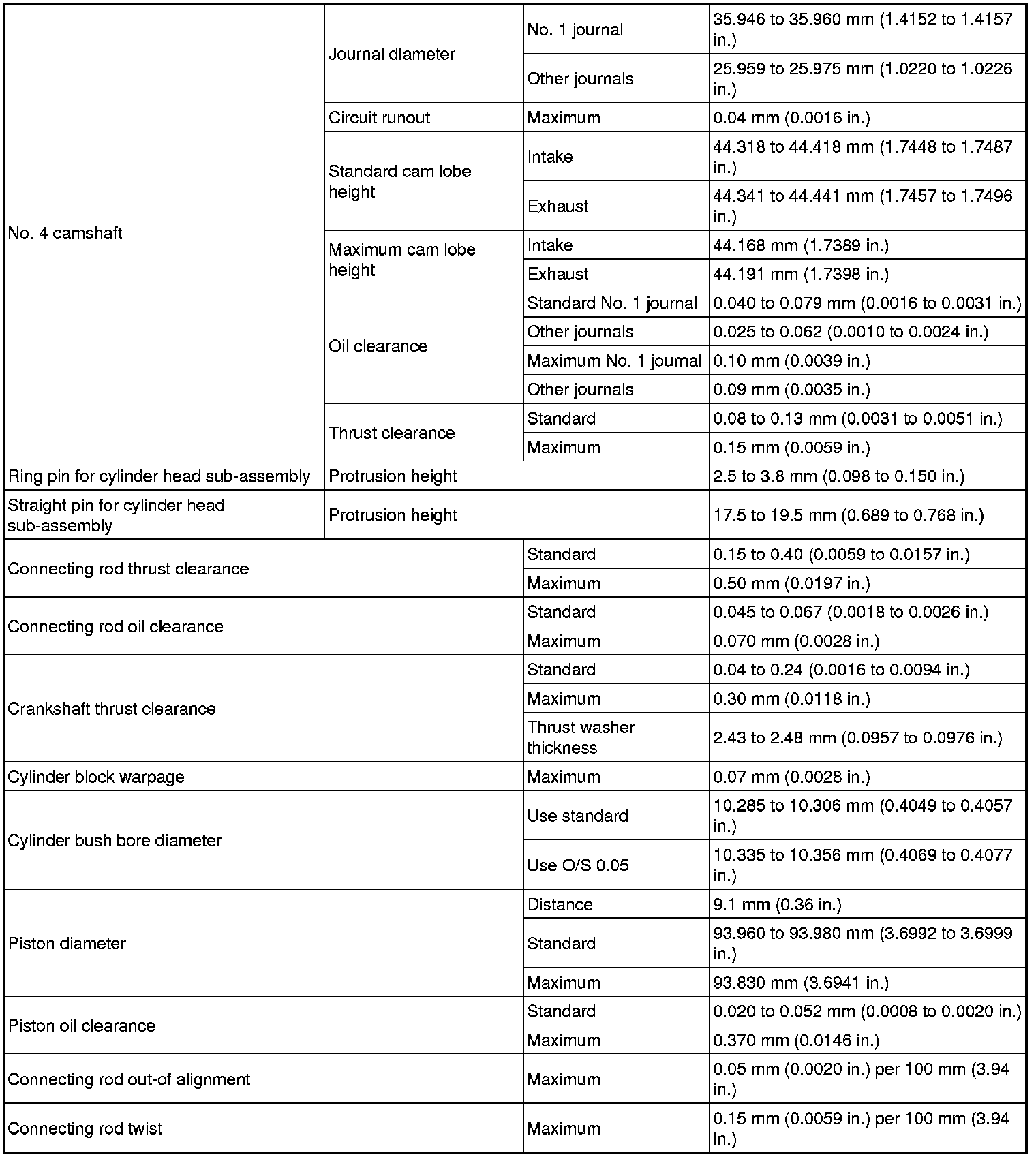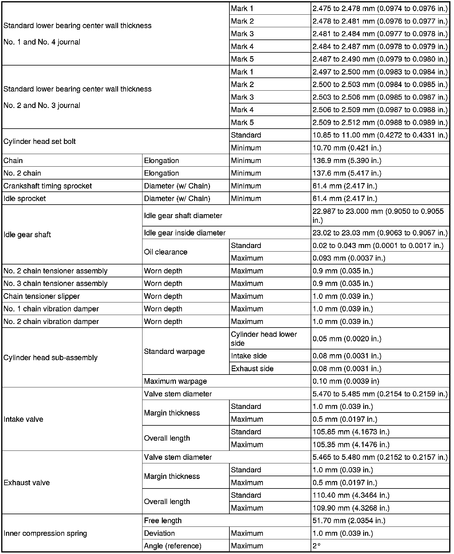 SERVICE SPECIFICATIONS: 2GR-FSE ENGINE MECHANICAL: SERVICE DATA