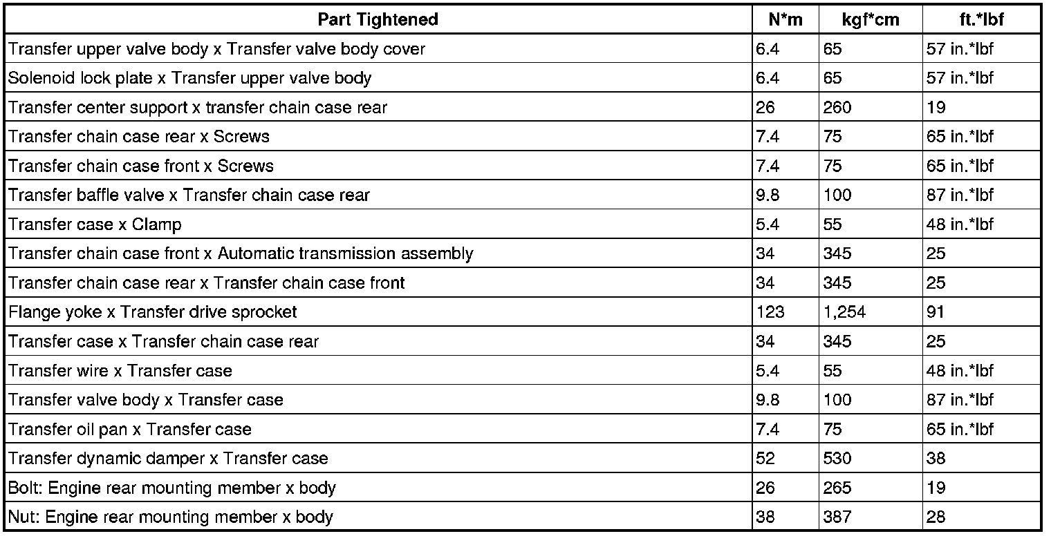 SERVICE SPECIFICATIONS: UF1AE TRANSFER: TORQUE SPECIFICATIONS