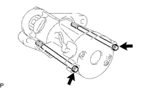 (a) Remove the 2 through bolts, and pull out the starter yoke and commutator end frame together.
