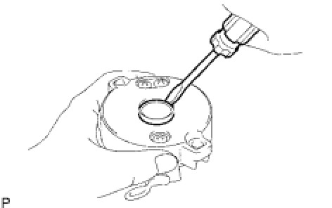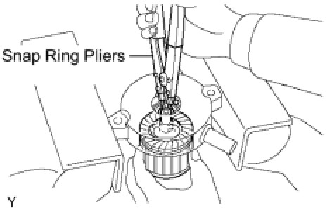 (b) Using snap ring pliers, remove the snap ring and plate washer.